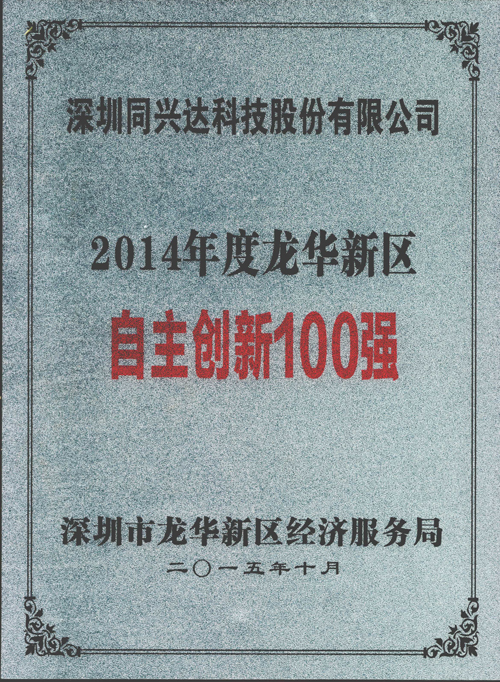 13.2014年度龍華新區(qū)自主創(chuàng)新100強(qiáng)