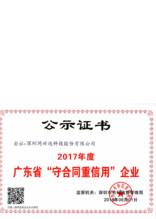 17.2016年度廣東省“守合同重信用”企業(yè)