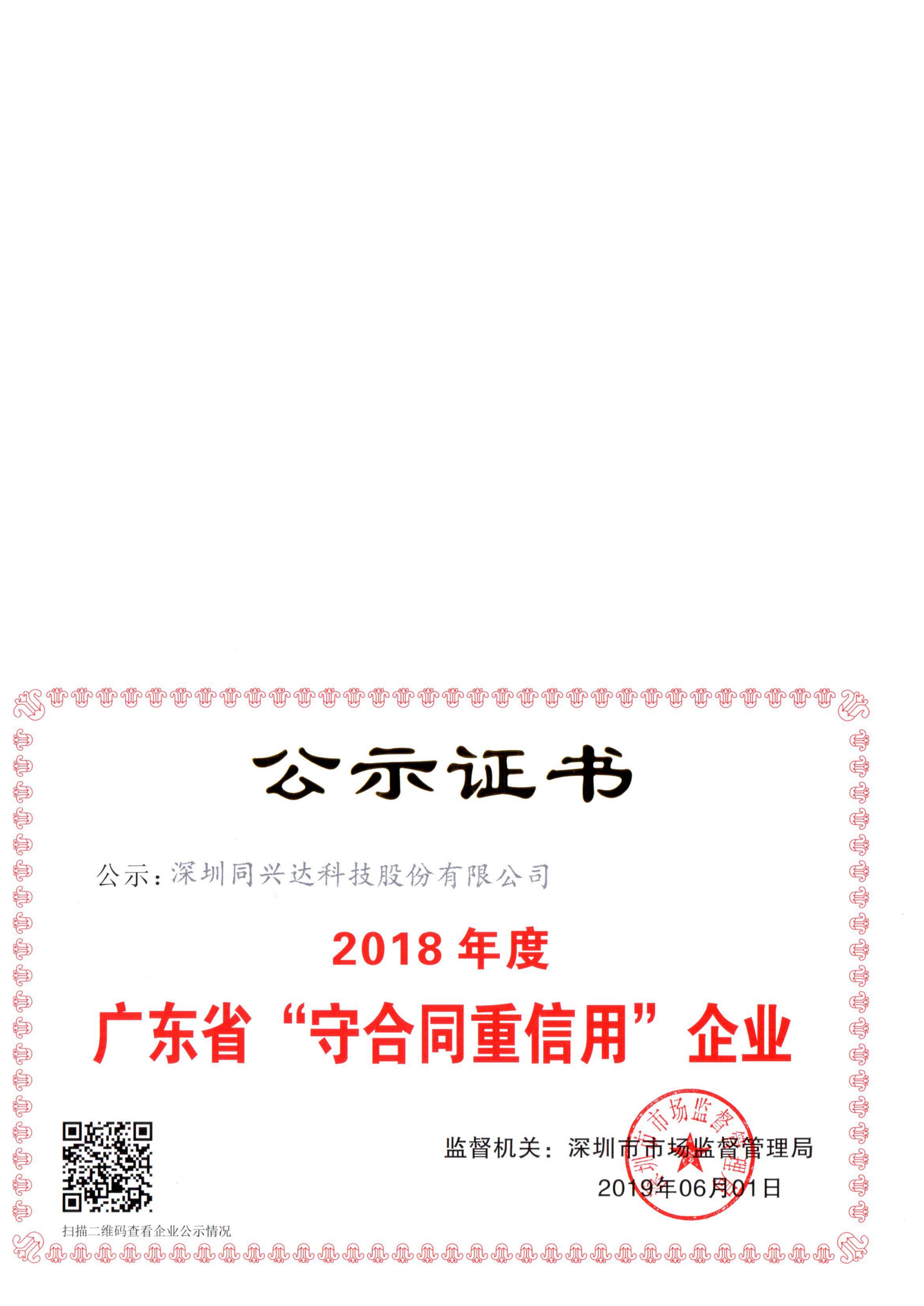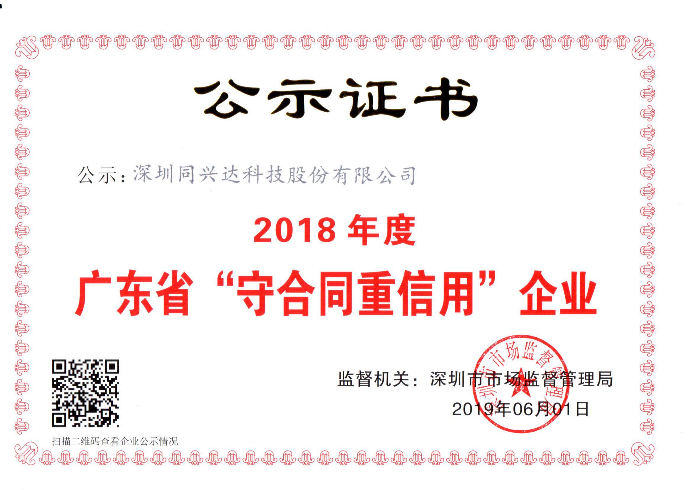32.2018年度廣東省“守合同重信用”企業(yè)