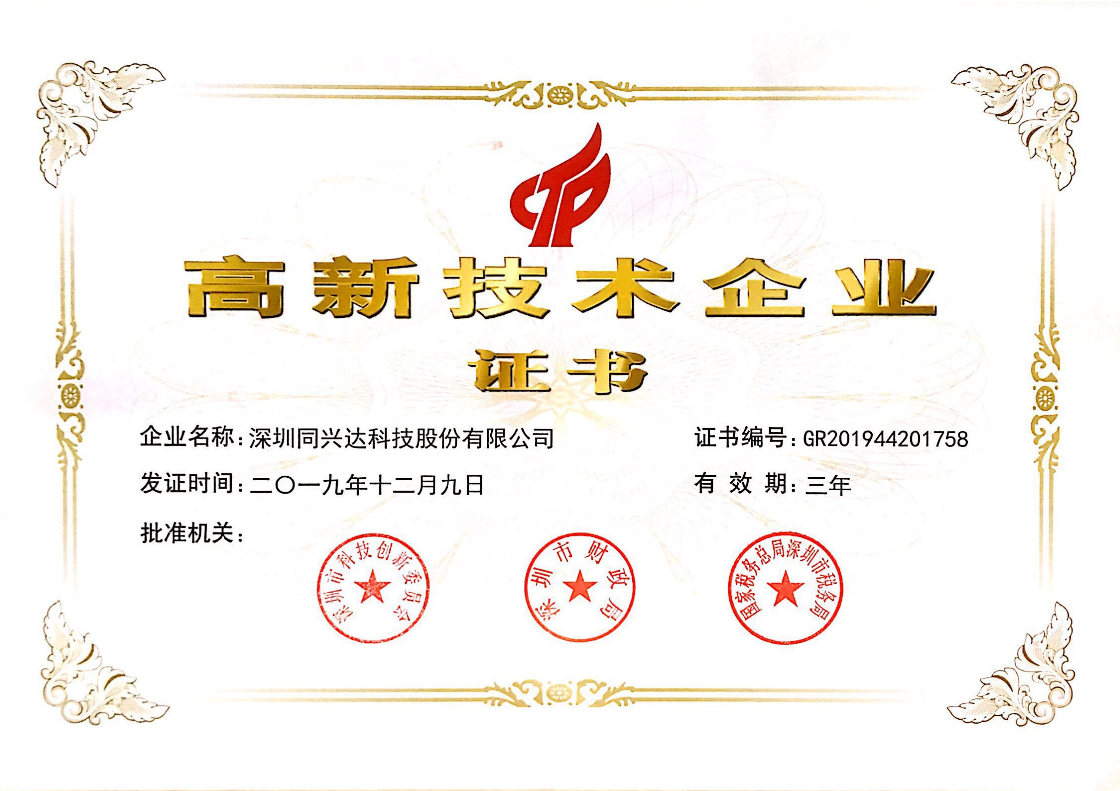 35.深圳同興達(dá)科技股份有限公司國(guó)家高新技術(shù)企業(yè)