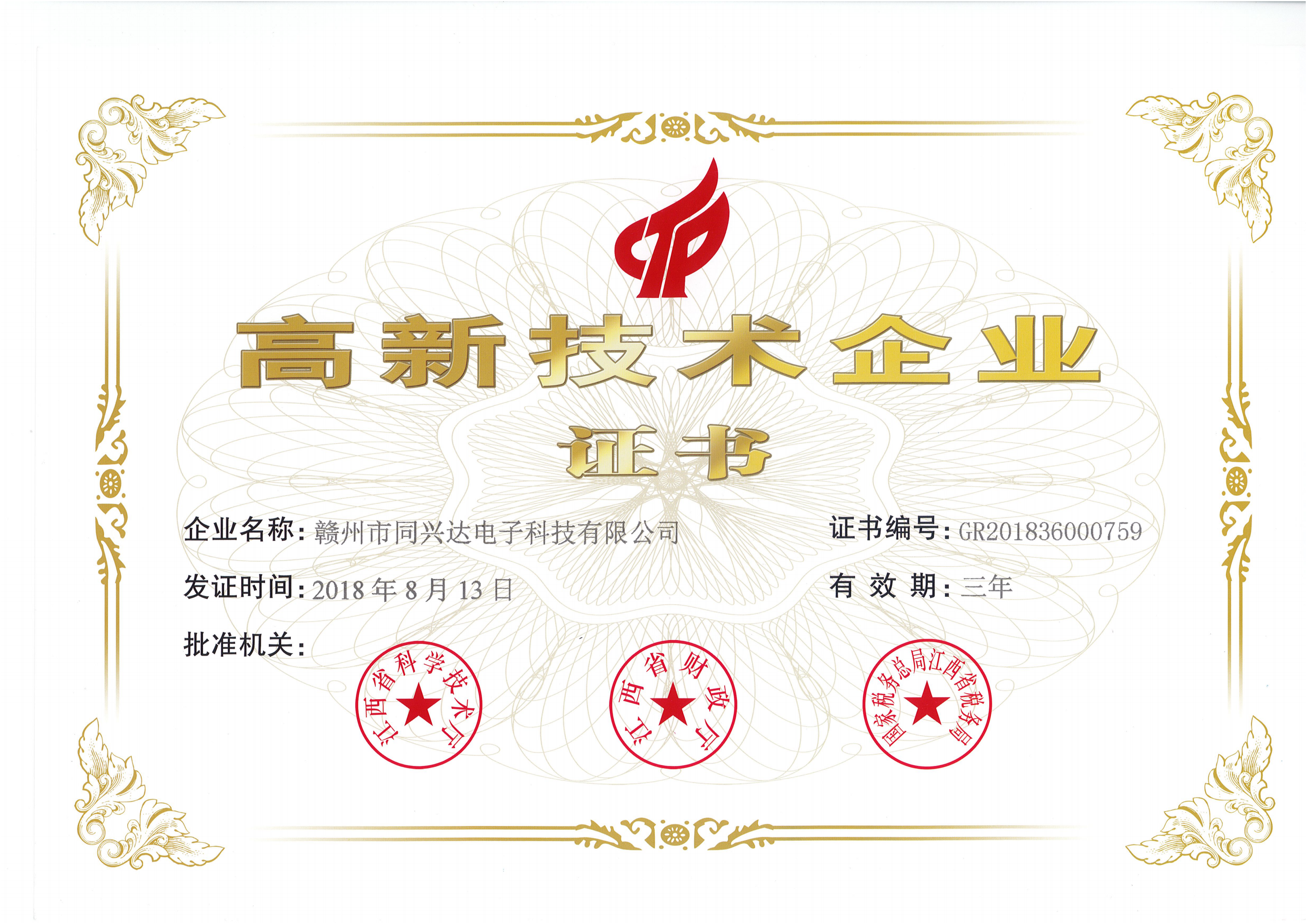 33.贛州市同興達(dá)電子科技有限公司國(guó)家高新技術(shù)企業(yè)