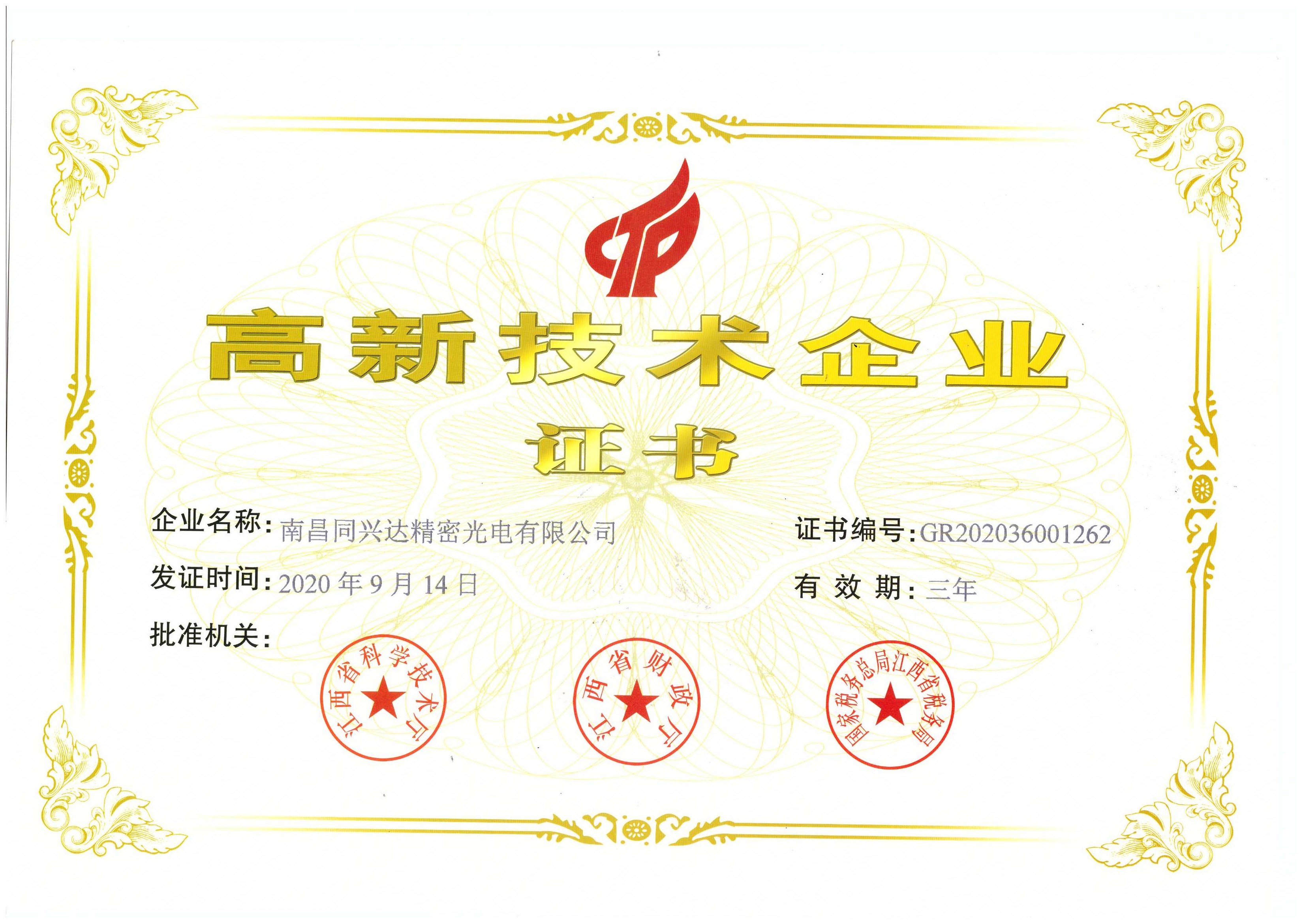 37.南昌同興達(dá)精密光電有限公司國(guó)家高新技術(shù)企業(yè)證書(shū)