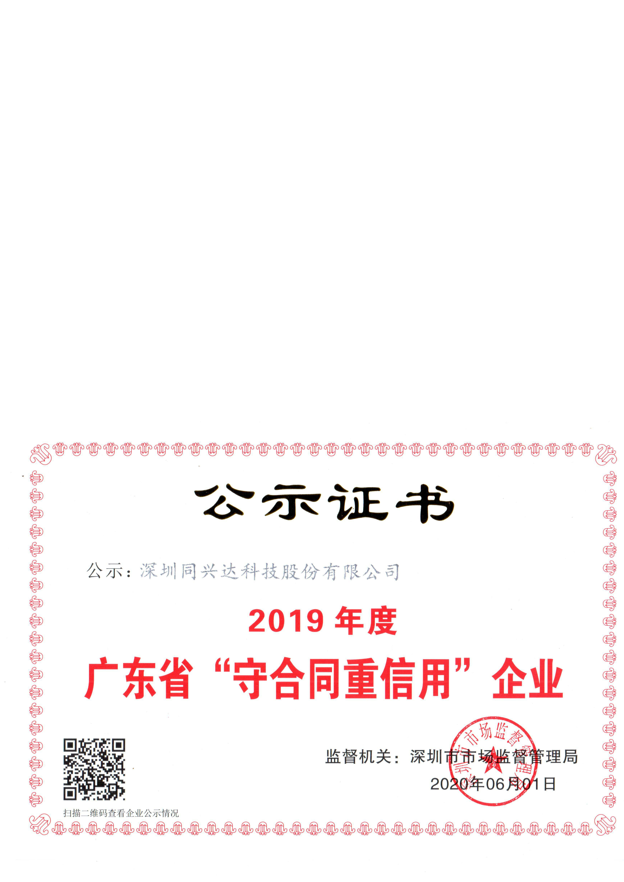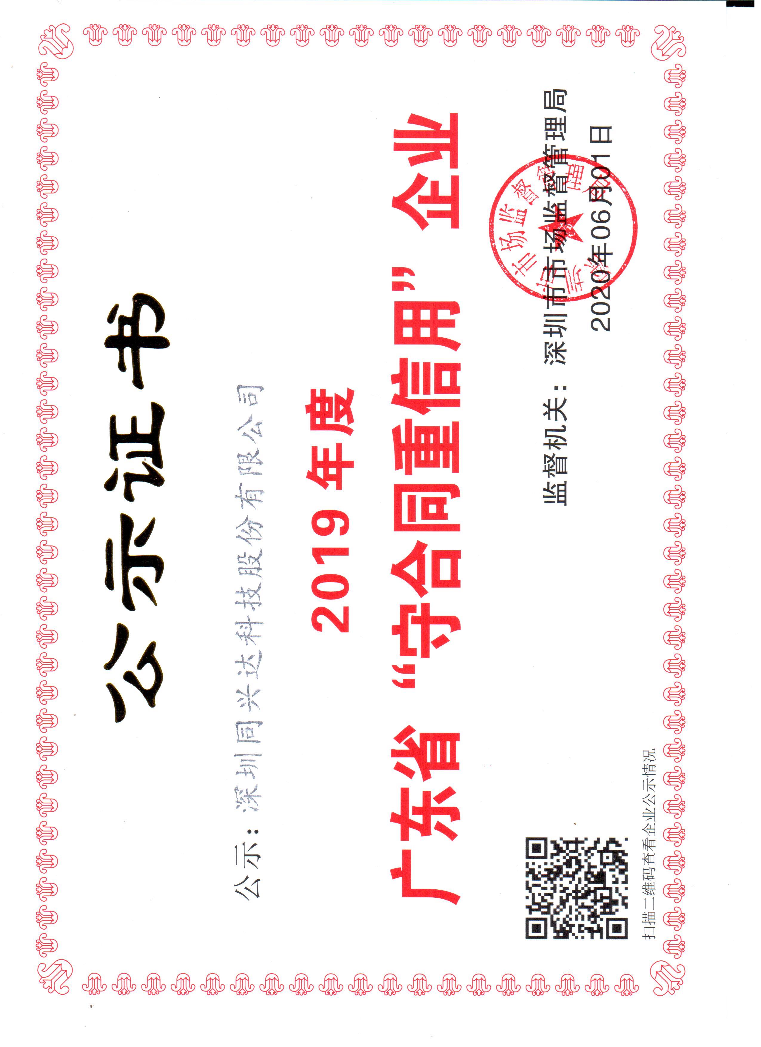 36.2019年度廣東省“守合同重信用”企業(yè)